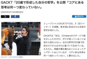 GACKTさんは20歳の頃に哲学の基礎というのを構築し、それは成功した今も変わらないとしてます。
