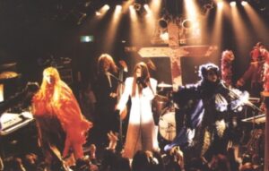 狭いライブハウスにMANAさんの自宅の家具などを運びヨーロピアンな世界観を構築し、メンバーは楽器を弾かずに舞踏会のように踊ったりと、当時の常識を覆す光景でした。